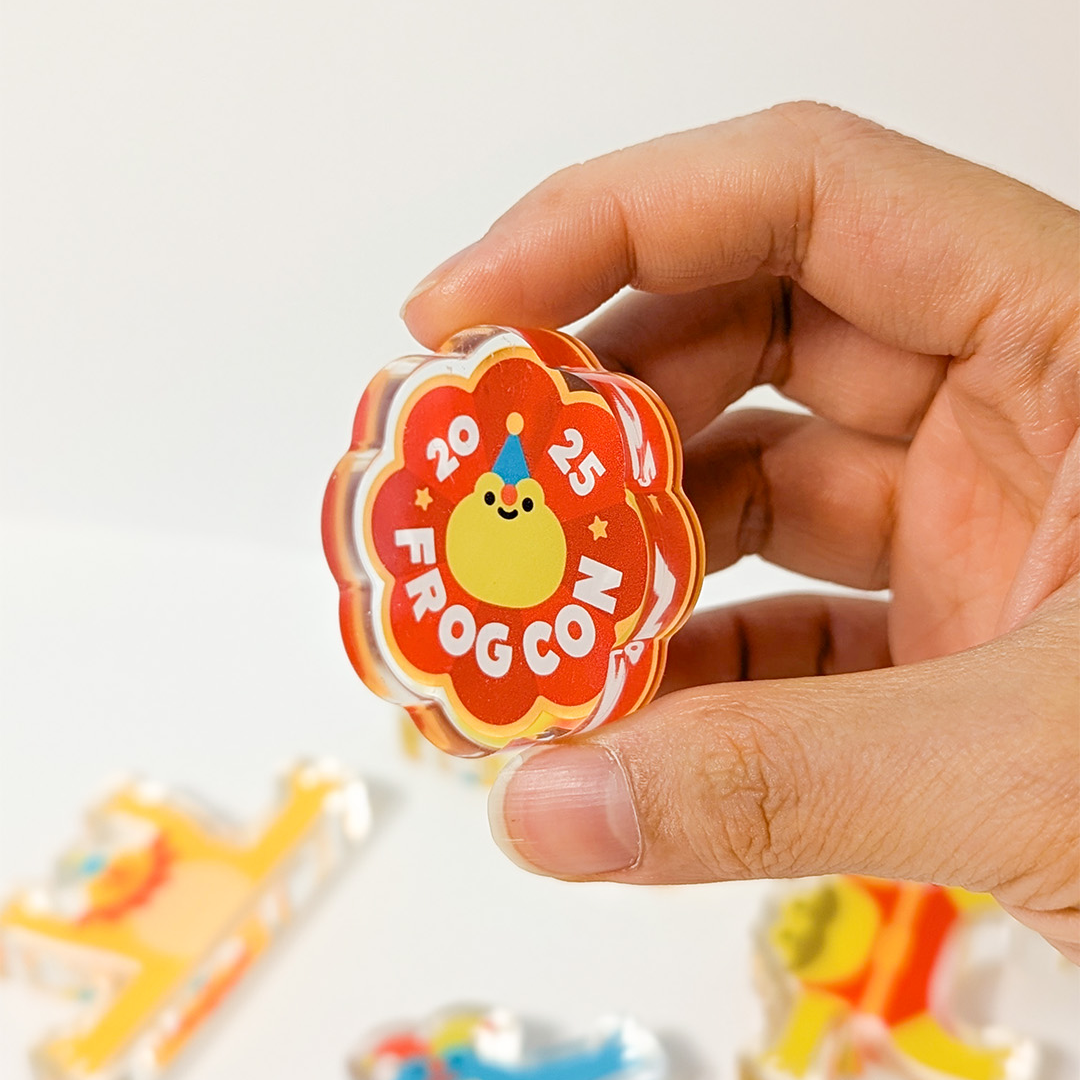 - 6 colourful clown frog standees (made with 1 cm thick acrylic) – around 5x6 cm depending on the frog